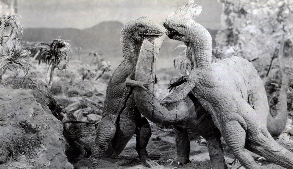 Dinosaurs rampage, courtesy of animator Willis O’Brien.