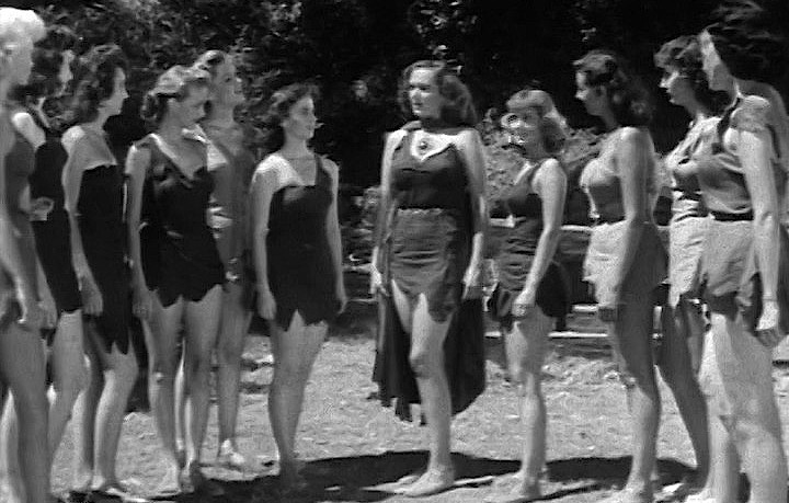 Untamed Women has garnered some significance as one of the many fifties candidates for the title “the worst movie ever made”, and as such has a bit of a reputation among bad movie fans. As I wrote in my review of Bela Lugosi Meets a Brooklyn Gorilla (1952, review), the fact that a film is “frequently named as one of the worst movies ever made” is generally an indication that it is, in fact, not one of the worst movies ever made. If it was, then it wouldn’t be frequently mentioned anywhere. However, of the movies frequently named as a candidate for the title of the worst movie ever made, Untamed Women is among those that come closest. That is mainly because it lacks some of the outrageousness that many other of these “so bad they’re good” movies have — I’m thinking Cat Women of the Moon (1953), Mesa of Lost Women (1953, review), anything directed by Ed Wood, Robot Monster (1953), Bela Lugosi Meets a Brooklyn Gorilla, etc. The untamed women are so tame that they don’t do anything to lift the film out of its slow-moving tedium. More than anything, they seem like a group of pageant contestants on holiday. And while the leather mini skirts may have raised a few heartbeats in the fifties, they ar quite modest, even for the time. Remember, this was the era in which the bikini shock waves were felt around the world, and movie stars would increasingly be photographed in the tiny two-piece bathing suit.