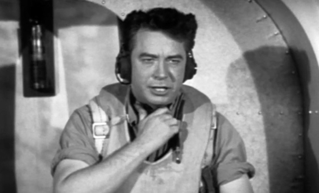 So what works in Untamed Women? Well, for starters, the opening sequence involving a bomber plane is actually quite nice. (Sources differ on the plane type, but my usually well-informed readers have convinced me that it is not, as I have read somewhere, a B-29, but a B-17. I do not protest, as I can’t tell a Boeing from a Messermschidt.) There’s good use of stock footage, and the air force even let United Artists have one of their out-of-commission planes to play around with (not fly, of course). There’s a somewhat coherent story, and occasionally the split-screen and back projection shots integrating the characters with the stock footage are somewhat nifty. But that’s about it.