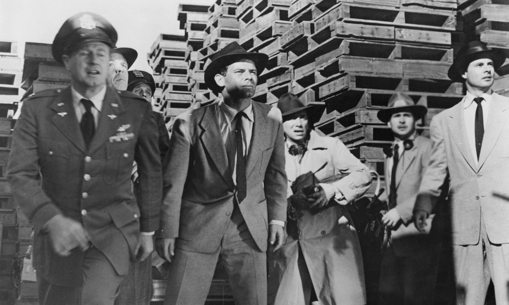 The film has some things going for it. It lines up with movies like The Day the Earth Stood Still (1951, review) and The Man from Planet X (1951, review) as a film about a benign, but misunderstood alien. The idea of an invisible humanoid alien is tantalising, and the fact that he tries to make contact with one of the scientists could have been an interesting starting point. Even the fact that the female scientist is the smartest and most level-headed of the bunch is certainly novel in a film of this era. The problem is that screenwriters Myles Wilder and William Raynor fail to do anything interesting with all this. Instead, all the agents and scientists and cops show off their utter ineptitude: in putting two and two together, in catching the alien, and in trying to make any sort of communication with it. All bungled efforts to catch and talk with the guy also leads to a bungled film, where audiences are left with no more answers than they had in the beginning.