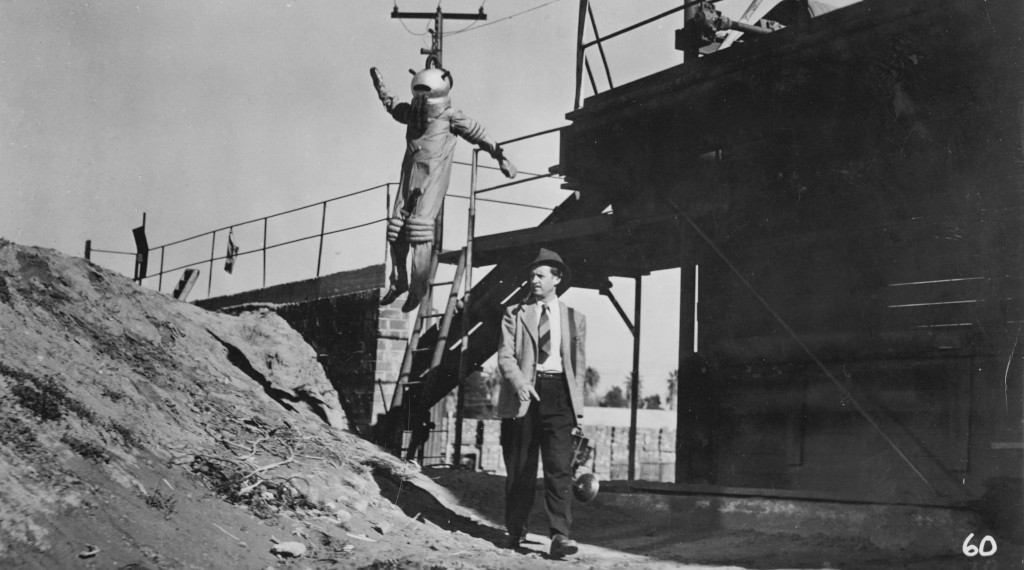 The shots of the glowing, fuzzy Sands atop the telescope in the end is also a rather nicely done little shot, and the end where the alien’s body disintegrates is not at all badly made. One fun gaffe is the fact that in some shots the alien appears to be wearing tight boxer briefs, in other shots (where his leg prudently covers his private parts) the briefs are gone. Even more bizarre is that his nipples keep disappearing and reappearing between cuts. The reason to the underwear discrepancy was that due to the Hays Code, nudity was not allowed on screen. The code did, however, state that some nudity was allowed, for example when it came to mannequins or statues, as long as it was done in the tasteful style of classical statues. So in some shots, Sands was replaced with a plaster cast of his own body, sans briefs and nipples.