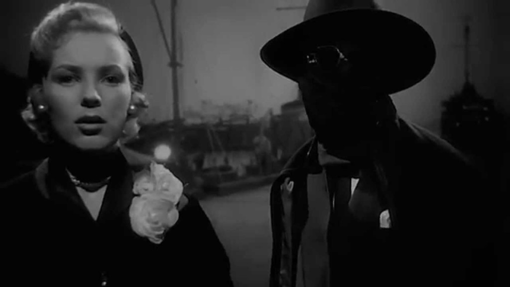 The most elaborate set piece of the movie is Dr. Ling’s huge laboratory, which is beautifully designed by renowned, multiple Ariel award winner Gunther Gerszo. The design of the movie tells of its minuscule budget — by Hollywood standards, not necessarily Mexican standards. This is most obvious in scenes which are meant to take place outdoors, but are obviously studio-bound. When Ling is chasing Nora by the docks, the filmmakers have crammed in a rather too small photo backdrop much too close to the action, so it almost looks like a mural. It’s not quite as bad as the dock scene in The Man from Planet X (1951, review), but not far from it. But Gerszo also manages to use the budgetary constraints in his favour, creating an expressionistic dreamlike atmosphere reminiscent of Whale’s Frankenstein with its plywood headstones and two-dimensional sets. But sometimes it just looks cheap and silly. Gerszo also provided his talents to sci-fi films like El supersabio (review), The Body Snatcher (1958, review), El castillo del monstruos (1958, review), El superflaco and La marca del muerto (1961).