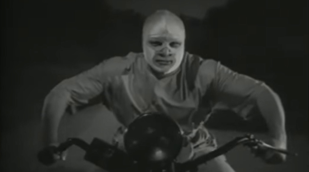 However, another man in a silver mask, wearing the white garments of a physician, starts foiling the gansters’ plans. This is the hero of our film, El médico asesino, or “The Killer Doctor”. Built like a brick wall, the Doctor rolls in on his motorcycle and clocks gangsters left and right, aided by the beautiful damsel in distress Elena (Aurora Segura) and the Robin to his Batman, newspaper boy Pecos, or “Freckles” (René Cardona, Jr.). The Doctor listens in to radio and telephone chatter from his high-tech laboratory, and communicates with Pecos through a gadget belt. Chasing both the villains and the hero are a gang of intrepid reporters, led by Victor Junco and Crox Alvarado, and the audience can keep busy guessing which of the two is actually the Doctor out of disguise.