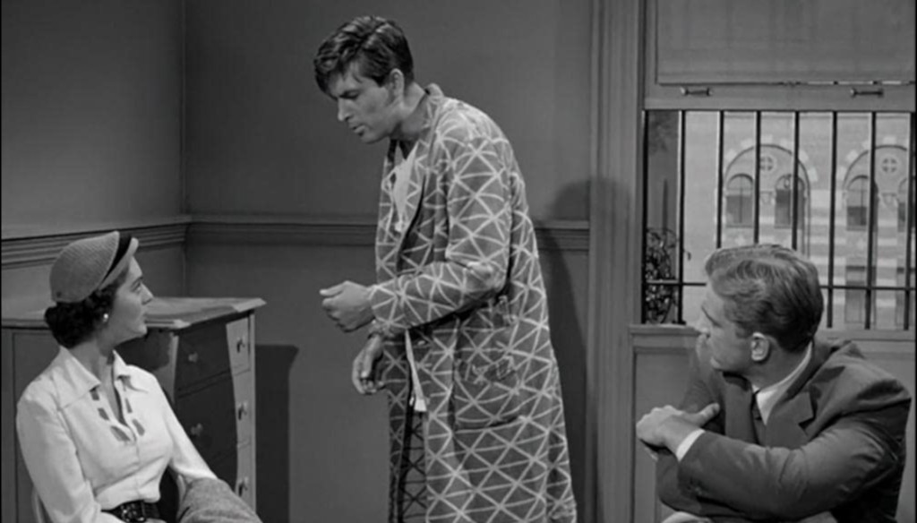 Fess Parker (middle) as a pilot confined to a mental institution after seeing “ant-shaped flying saucers”. Flanked by Joan Weldon and James Arness.