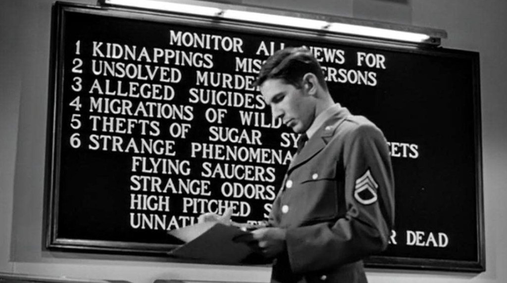 The most talked-about bit-part is the one played by an uncredited Leonard Nimoy of later Star Trek fame. Nimoy has a couple of lines as a military communications worker, gathering strange news from the wires. Blink and you’ll miss him. As mentioned before, there’s also sci-fi stalwart William Schallert as the ambulance driver. Then there’s Emmy-winning composer Richard Bellis as one of Hokanson’s sons, master stuntman Roydon Clark as a stunt jeep driver. There’s Jack Perrin, a prolific bit-part player who once was one of the pioneers of Hollywood when he made his film debut in 1915. Slated as a cowboy star, he nevertheless got dropped by Universal in the mid-twenties and made a living through the twenties and thirties playing leads in Poverty Row westerns and Canadian mountie films. From the late thirties to the early sixties he ostensibly worked as an extra, almost never credited. Then there’s character actor Willis Bouchey, who played the president of the United States in Red Planet Mars (1952, review), and appeared in Panic in Year Zero! (1962). Bouchey was a favourite character actor for John Ford, and appeared in close to 200 films.