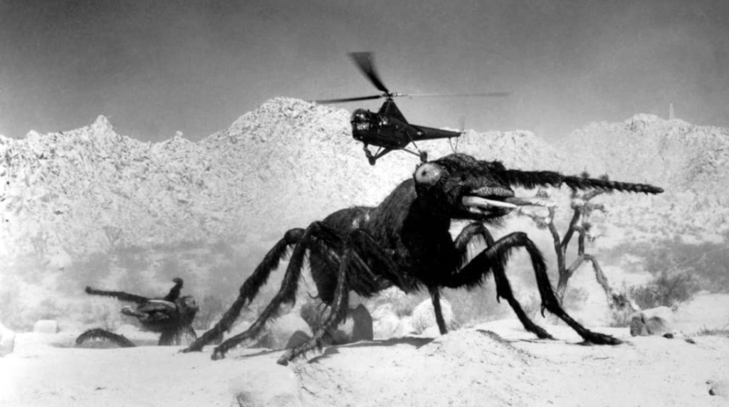 According to Bill Warren’s splendid book Keep Watching the Skies, the idea for the film came about when Yates had a discussion about what sort of script he could best sell to a movie company. According to Warren, he started working on the script, inspired by The Beast from 20,000 Fathoms in 1952, which is strange, as that film wasn’t released until 1953. But however it played out, the gist of it was that he thought that another nuclear monster would sell well after the success of Beast, and thought giant ants would be appropriate, as ants were very familiar to audiences and there would’t be much need to explain how ants work and behave.