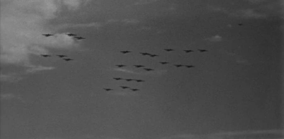 In the book, the aliens don’t pose a physical threat to the protagonists. They don’t turn up, otherwise than as “wails and shadows”, before the very last pages, and the only description we get of them is that they are ”thin and fragile” and that they ”don’t look much like us”. Fairman also employs the classic H.G. Wells ending that has become a staple cop-out for sci-fi writers: the aliens die because of bacteria on Earth, or something similar. In the film, the military comes up with a solution to kill the robots by blasting out sound at a specific frequency, which was still a rather novel idea at this time in sci-fi history, and one that has been used frequently since. It wasn’t the first time sound was used as a weapon, though. Off the top of my head I can think of similar tropes in Dick Barton Strikes Back (1949, review) and Gog (1954, review), although not used quite in the same way.