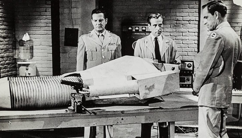Robert Roark, playing the homicidal maniac Davis, got the part because his dad was one of the film’s backers. He also had a bit-part in Killers from Space. The top military man in the film is played by an actor by the wonderful name of Arthur Space. Character actor Space appeared in close to 300 films or TV shows between 1941 and 1981, including Panther Girl of the Kongo (1955) and 20 Million Miles to Earth (1957, review). Whit Bissell plays the lead military scientist, and is a cult actor, who’s appeared in a multitude of science fiction films and series, but the cream of the crop are Creature from the Black Lagoon, Invasion of the Body Snatchers (1956), The Time Machine (1960), The Time Tunnel (series, 1966-1967), Star Trek (1967) and Soylent Green (1973).