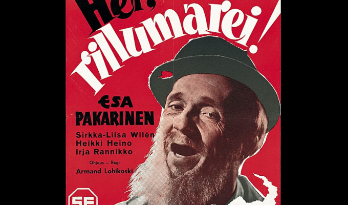Two of the most successful rillumarei songwriters and artists were Reino Helismaa and Esa Pakarinen, and in 1951 director Toivo Särkkä suggested making a series of films based on a collaboration between them and a few other rillumarei artists. The films often had parallel plots, one romantic and one comedic, filled with broad slapstick and verbal humour, and lots of rillumarei songs. Esa Pakarinen, who didn’t really have any acting experience, was chosen to star in the first rillumarei film, the above mentioned Rovaniemen markkinoilla, and it was such a hit that he instantly became the defining star of the genre, going on to play the lead in half a dozen early rillumarei movies, often as the same character, Severi Suhonen. The films were loved by the public, but crushed by the critics. The film company Suomen Filimiteollisuus (SF) and the writers, songwriters, producers and directors were called out in the press for corrupting the youth and destroying Finnish taste in music.