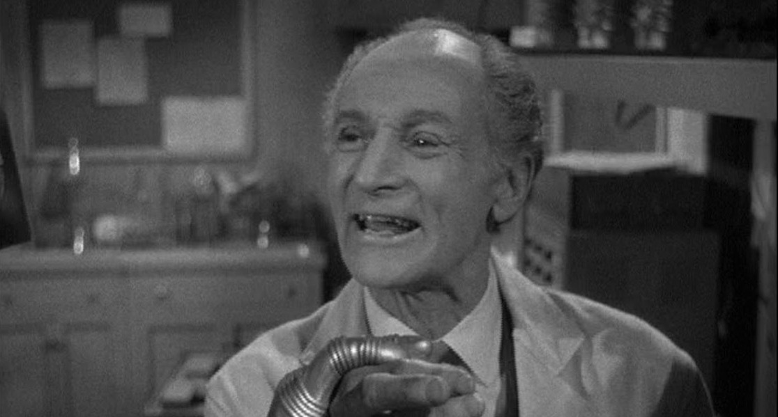 One of the lead scientists treating Blix in The Atomic Kid is played by character actor legend and SF stapleWhit Bissell, known to friends fifties horror and SF films as the eternal straight-laced, often mild-mannered and competent scientist, physician, government official or military man. He is best known to a wider audience for one of his rare villainous roles, that of the evil scientists who turns future Charles Ingalls,Michael Landon, into a werewolf inI Was a Teenage Werewolf (1957, review). But his SF credit sheet is a mile long, and memorable performances include Dr. Thompson inCreature from the Black Lagoon (1954, review), a small but crucial role as the doctor in the framing story of Invasion of the Body Snatchers (1956, review), a likewise small but important role as one of the time traveller’s sceptical friends in George Pal’s The Time Machine (1960) and his portrayal of the evil Governor Santini in Soylent Green (1973). He also appeared in a small role in Lost Continent (1951, review), played a military scientist in Target Earth (1954, review), reprised his villain inI Was a Teenage Frankenstein (1957, review), appeared in Jack Arnold’s Monster on the Campus (1958, review), played Dr. Holmes inIrvin Allen’s TV movie City Beneath the Sea and reprised his role in a TV remake ofThe Time Machine (1978). Bissell was also a familiar face in science fiction TV from the fifties onward, appearing in many anthology shows, such as Out There and Science Fiction Theatre. His most prominent SF role was that of Lt. Gen. Heywood Kirk, one of the main characters of the TV series The Time Tunnel (1966-1967). Other memorable SF moments on TV for Bissell are the 1959 Christmas episode of Men into Space, the injured navy captain at the heart of the One Step Beyond episodeBrainwave (1959), as small role as commanding officer inThe Outer Limits episodeNightmare (1963), guest starring a young Martin Sheen, Mr. Lurry, the station Manager of the space station involved in the legendary Star Trek episodeThe Trouble with Tribbles (1967), and as one of the scientists studying the captured Hulk in The Incredible Hulk episodePrometheus: Part II (1980).