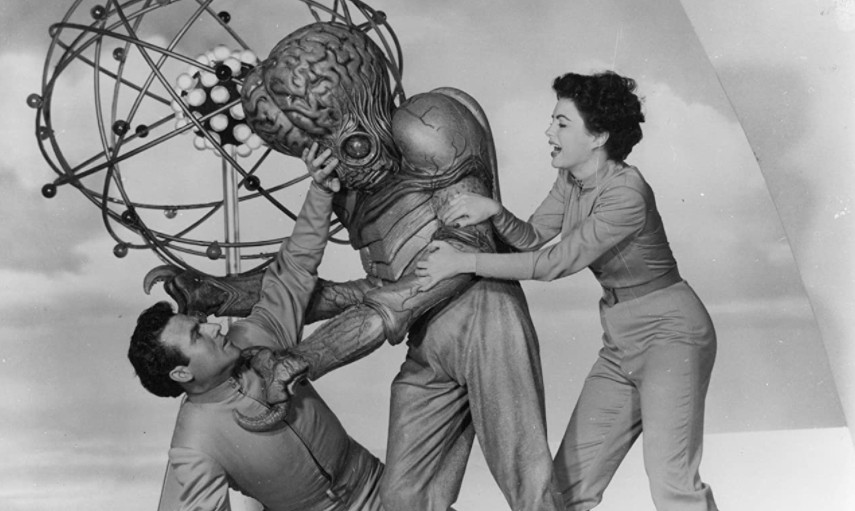 The movie has a mixed legacy today. It is sometimes, unfairly, clumped together with some of the low-budget dregg pumped out of Hollywood in the fifties. This is because it was, inexplicably, chosen for riffing in MST3K in 1996. It has a middling 5.9/10 audience score on IMDb and a 5.8/10 critic score on Rotten Tomatoes, albeit with an overwhelmingly positive 73% Fresh rating. AllMovie gives it 3/5 stars, with Stephen E. MacDonald calling it a “better-than-average science fiction movie”. He continues: “This Island Earth, sometimes unfairly picked on, is well worth seeing”. TV Guide is even bolder: “A landmark science-fiction film, this is an intelligent interplanetary epic filled with beautifully crafted designs and marvelous special effects.” Scott Tobias at the Onion AV Club also picks up on that ill-advised MST3K inclusion: “Sure, the film features plenty of silly elements—dated technology and effects, Z-movie performances, hilariously antiquated notions of space travel—but Manos: The Hands Of Fate this isn’t. Someone put a little thought behind it, and for that, it deserves some respect.” He gives the movie a B- rating, or along the lines of 7/10. This is the same rating given by Mike Noys at Inside Pulse, as he calls it ” classic “B” Sci-Fi film in all its glory”. IGN was not impressed, though, giving This Island Earth a 4/10 score. Peter Schorn thought the effects were shoddy; “Even cutting it slack for the primitive technology can’t remedy the greater problem that This Island Earth is rather dull, even at a brief 86 minutes in length.”