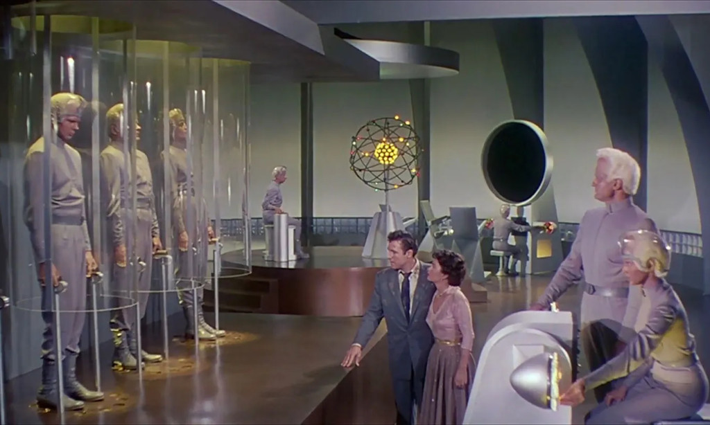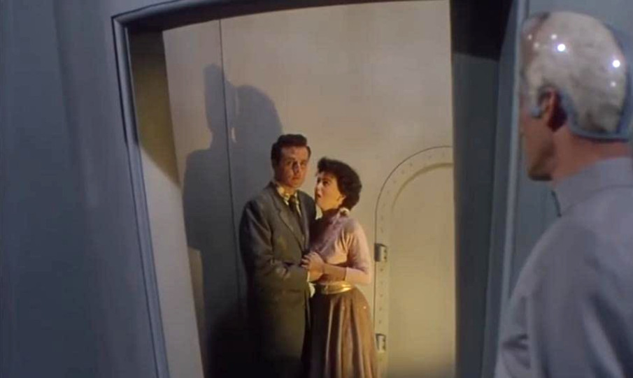 In addition the film has a typical US cold war ethos attached to it. The original script had a strong, almost paranoid, anti-communist sentiment, which producer Alland partly removed, and it was further softened by Jeff Morrow’s attempts at making Exeter more of a good guy, but the theme is still there, in the shape of alien spies infiltrating USA to steal its scientific secrets. Because of the opposing views of the original screenwriter, Alland and Morrow, the moral of the film gets rather muddled, and exactly what it is trying to say is unclear, except that Earth is a haven worth fighting for. But it is difficult not to draw parallels between the Metalunans, who turn out to be just as bad as the enemy they are fighting, and the Soviet Union. This would make Earth America, and we only meet good people from Earth in the film. The movie also has a very positive view of nuclear power, and the technology is only ever mentioned as a boon for humanity, a promise of free and endless electricity and the solution to all our modern problems. The downside of nuclear technology is never mentioned with a word.