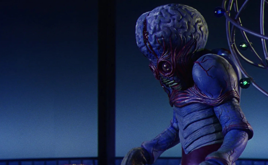 The most lasting legacy of the film is probably the mutant, which just shows what shrewd businessmen the people at Universal were. There’s some confusion about whether the mutants were written into the first script draft, or if Universal stuck them in because they wanted a monster, but however it happened, this is one of the weaker designs from the studio, considering their last creation had been the creature from the black lagoon. The big-brained mutant’s design partly drew on unused sketches from the alien of It Came from Outer Space, and there seems to have been something of a design battle going on, between whether it would look like it had simply been distorted by Metaluna’s great atmospheric pressure, or if it should look more insect-like. In the end they went for a mashup of the two ideas, giving the creature an enormous brain, but pincers for arms, bug-eyes and a torso and arms resembling the exoskeleton of a bug. The legs were meant to have the same design, but to save time and money, the makeup team, led once again by Bud Westmore, decided to simply give it pants.