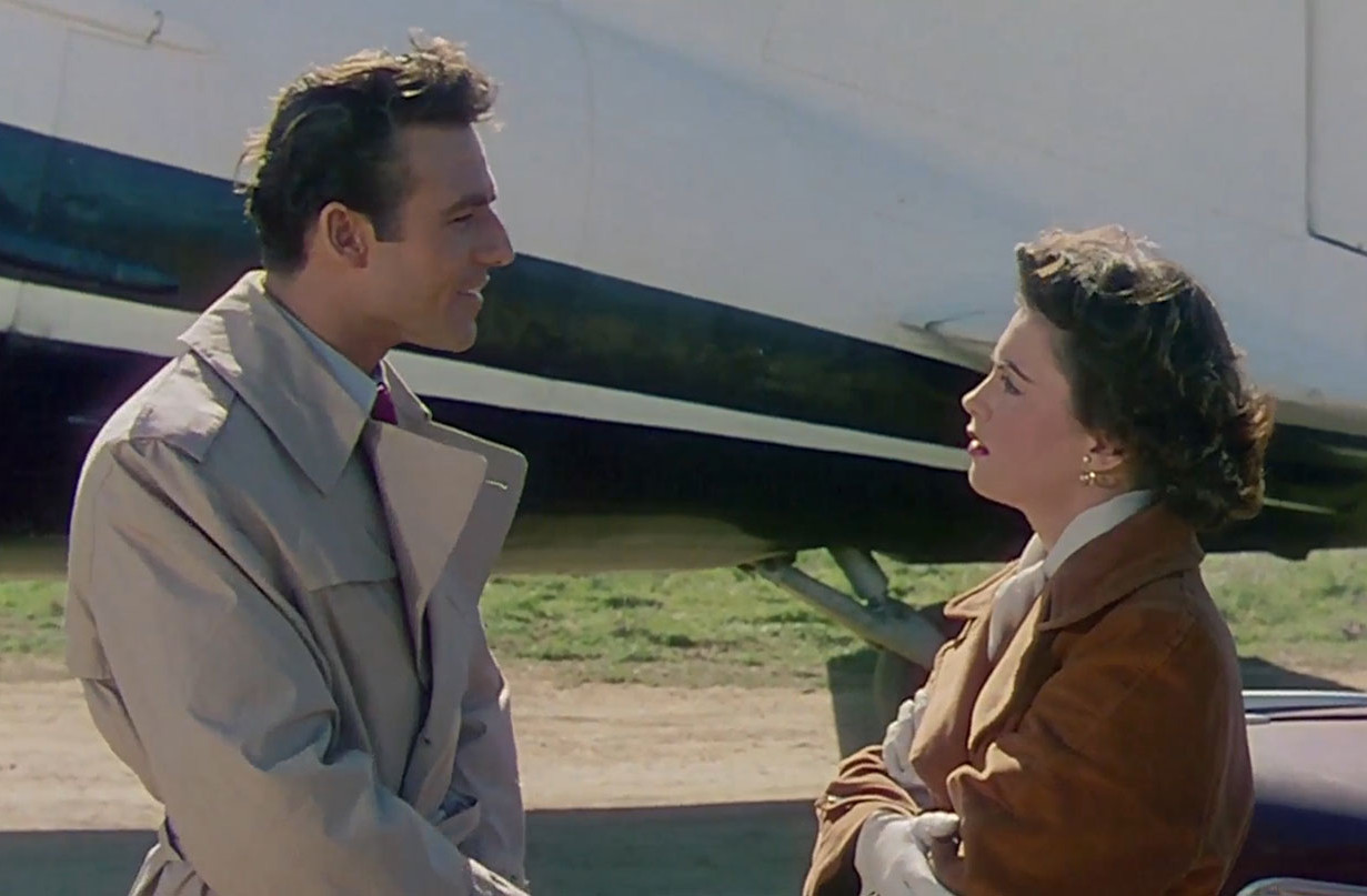 On a foggy morning Meacham enters a radio controlled plane sent by the mysterious engineers, and ignores Wilson’s warnings about going. After a long flight he lands in Georgia, where he is met at the air strip by a Dr. Ruth Adams (Faith Domergue), who picks him up by car. In the film, Meacham seems to remember that the two went skinny-dipping together at a conference in Virginia a few years back. Adams says that she is flattered, but that he has her mixed-up with some other girl (although her body language tells a different story). The book doesn’t mention any previous romance, but the change is for the better, since one of the flaws of the book is that it fails to explain how or why a sudden love grows between the two protagonists.