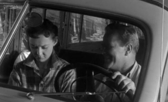 Roger Corman’s film follows the ordeal of a dysfunctional family living on a remote ranch in the desert, the Kelleys: father Allan (Paul Birch), mother Carol (Lorna Thayer) and daughter Sandra (Dona Cole). Crops are failing, Carol is depressed by the loneliness and the dull farm life and lashes out at her daughter, and the daughter lashes back because she is a teenager, and seeks comfort in her dog. The mute, giant, mentally handicapped farmhand, called ”Him” (Leonard Tarver) reads smut magazines in his shack and spies on Sandra when she is swimming. The deputy Larry (Dick Sargent) is Sandra’s girlfriend. Chester Conklin as a comic relief farmer completes the cast of the movie.