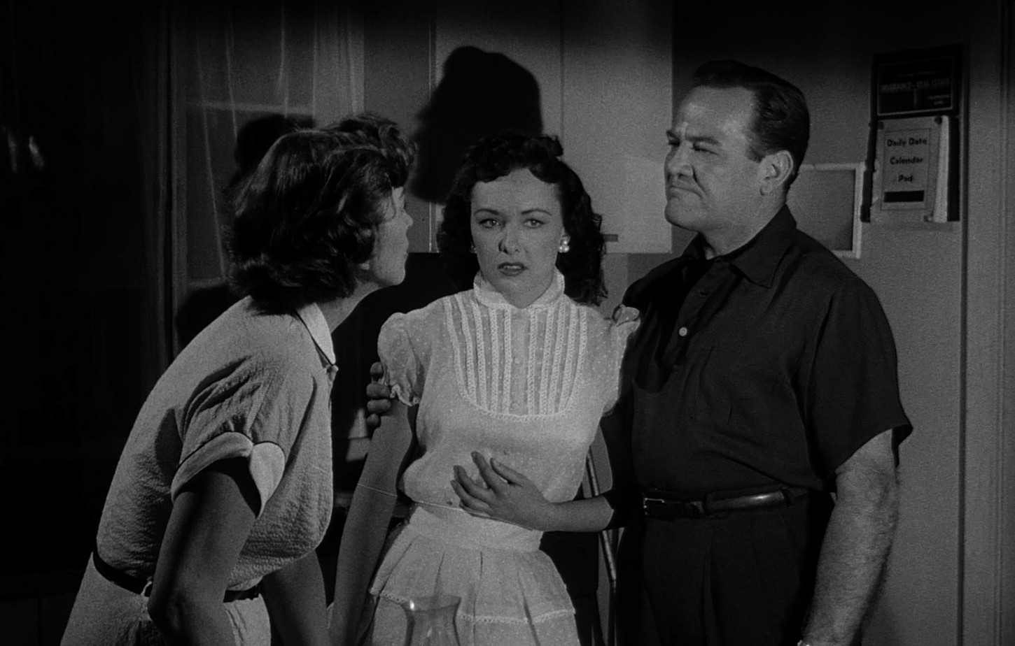 Lorna Thayer is perhaps the strongest actor in the film. Some reviewers just dismiss the role as a ”complete bitch” what with all the yelling and bad temper, and her way of taking out her frustrations on her daughter and on ”Him”, but of course one should look a litter deeper than that. There’s a notion that Carol married out of class, by the way she mourns the loss of all her beautiful china and glass-ware, a last reminder of who she used to be before she became a secluded farmer’s wife, imprisoned on a farm away from civilisation. Perhaps she feels that Allan is no longer the charming man that she once married, now maybe changed by his experience in the war, and depressed by the failure of his farm. Perhaps he no longer sees her, the way she no longer sees him. And then there’s Sandra, now threatening to go off to college, with her whole life ahead of her, of which Carol is jealous – this is perhaps the point on which the script loses its credibility. A mother would rather be happy that her daughter would have the chance to get out of the rut the she herself is stuck in, and the way Carol even professes to ”hate” Sandra for her youth is downright ridiculous, especially as the girl is portrayed as the sweetest, most innocent thing in the world. It is perhaps this weird notion that makes it difficult for Thayer to get a grip on the role, lashing out to over-acting in the most ridiculous parts of the script.