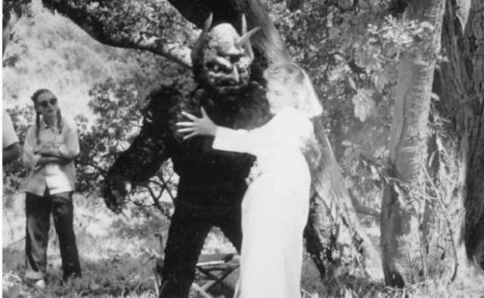 Corman had serious misgivings about Blaisdell playing the mutant, not least because he had to carry Lori Nelson for a substantial amount of time – and as said: Blaisdell was neither big nor strong. Nelson wasn’t either, but she was a grown woman. To make matters worse: because Blaisdell had built the shoulders and head so high, he had to lift her all the way up to his chin to make it look as the mutant was carrying her at chest-height. He and Nelson had worked out a routine in which she was going to take a swing at him, missing, and landing her arm above his shoulder, and he would use the momentum to swing her up in his arms. But when filming, Nelson forgot the routine. And since Corman had a notorious dislike for re-takes, Blaisdell then had to awkwardly try to wrangle her up into his embrace, and was positively surprised when he was able to do so without toppling over. According to Palmer, things went from bad to worse, when Blaisdell started making jokes from within his suit, and sent Nelson into fits of giggling, making her bouncing in his already precarious grip, resulting in the inevitable pratfall. But Corman didn’t want to do any re-takes, and instead cobbled together what he had in editing. When you watch the movie, it’s obvious that Blaisdell has considerable trouble walking with Nelson in his arms, and you can see him staggering and wobbling on numerous occasions.