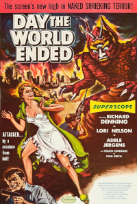 Day the World Ended (1955, USA). Directed by Roger Corman. Written by Lou Rusoff. Starring: Richard Denning, Lori Nelson, Paul Birch, Mike ”Touch” Connors, Adele Jergens, Raymond Hatton, Paul Dubov, Jonathan Haze, Paul Blaisdell. Music: Ronald Stein. Cinematography: Jockey Arthur Feindel. Editing: Ronald Sinclair. Set decoration: Harry Reif. Makeup: Steven Clensos. Sound: Jean L. Speak. Special effects (monster maker): Paul Blaisdell. Produced by Roger Corman for Golden State Productions.