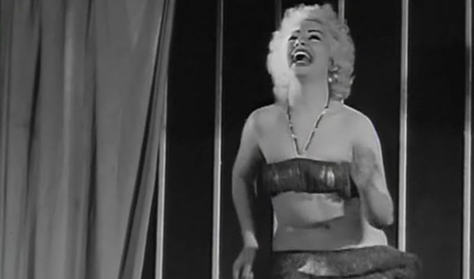 The comedy in Flying Saucers Over Istanbul is of the practical rather than verbal sort. Unfortunately neither of the lead actors have any talent for physical comedy, although they do try falling over and stumbling. Orhan Ercin is trying to do a Jerry Lewis schtick, but hasn’t the timing, the wit, nor the facial motor skills for it. There’s one scene where he’s character gets drunk, seemingly for no other reason than for Ercin to get a chance to do a drunken skit. The scene with the vulgar Marilyn Monroe impersonator doesn’t really have any bearing on the plot either, nor does it become funnier by having two “Marilyn Monroes” on screen at the same time. And I’m pretty sure the real Monroe wouldn’t have performed with a giant band-aid on her elbow as Mirella Monro does.