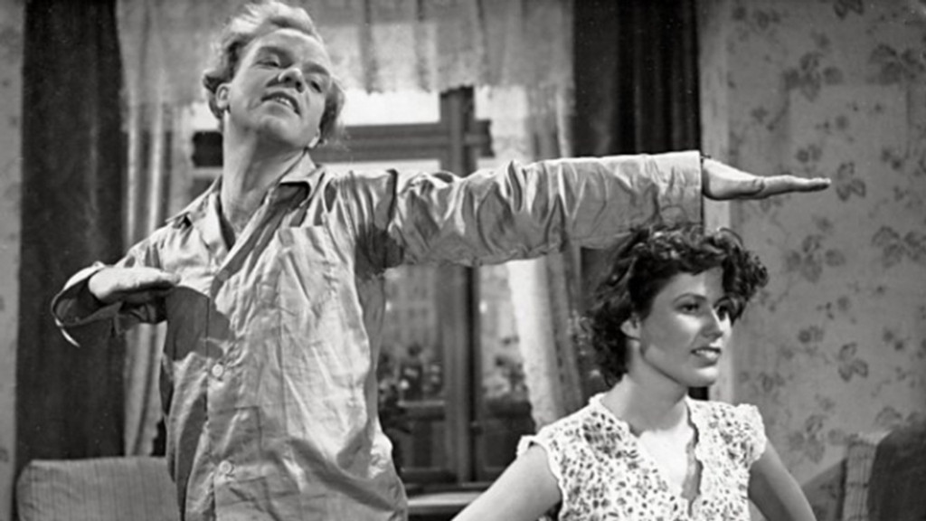 Like in most European countries, the 50’s in Norway were a time of economic growth, investment and rebuilding, a period of both economic and social optimism. Like in the US, social and family lives were also finding new ways to settle after the uprooting of social norms and traditions during the war. The American screwball comedy had its golden era in the 40’s and early 50’s, and neighbouring Finland produced many of its most popular, folksy comedies in the fifties, of which the afore-mentioned snowman film is a good example. The period between 1950 and 1965 is often seen as the Golden Age for the Norwegian comedy. The 50’s, in particular, were dominated by the so-called “marital comedy”. As opposed to the classic romantic comedy where the focus often lies on overcoming hurdles that lie in the way of forming a relationship, the marital comedy tends to put focus on gender roles and social norms, writes Anne Marit Myrstad in an article for Tidsskrift for Kjønnsforskning. Myrstad identifies the Norwegian marital comedy as largely falling under the subgenre of the husmorsfilme, or the “housewife movie”. In her Master’s thesis on Norwegian comedies (2014, University of Bergen), Hanna Kvalheim Hekkelstrand notes that the large majority of all women in Norwegian comedies of the fifties and sixties were stay-at-home housewives. Much of the comedy, writes Myrstad, is derived from men trying and failing to do housework, thus reinforcing the idea that the kitchen and the laundry room are a woman’s domain.