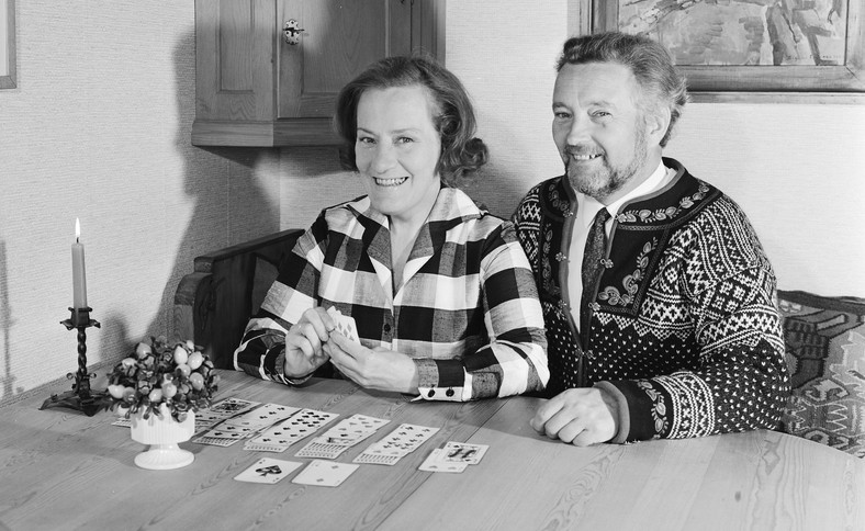 A last actress worthy of mention is Aud Schønemann, playing the role of the first nanny that the Haugen couple try out. One of Norway’s most beloved entertainers, Schønemann was well versed in dramatic stage roles, but it was as a comedienne that she made her name. She debuted on stage in 1945, and became legendary for her starring role as the cleaning woman at the heart of a murder mystery in Jack Popplewell’s play Busybody in 1969. Her line “Skulle det dukke opp flere lik er det bare å ringe” (“Would any more bodies turn up, then just give me a call”) has entered the Norwegian vocabulary and also became the title the hugely popular 1970 movie adaptation, also starring Aud Schønemann. Her stage performance garnered her the Norwegian Critics’ Award for best actress. However, she is best known and beloved for her roles in the 14 Olsenbanden comedies (1968-1999) and the TV serier Flexnes Fataliteter (1972-1982). Following the exploits of a trio of unlucky criminals, the Olsenbanden (“The Olsen League”) films were based on a similarly popular string of films, also called Olsenbanden, in Denmark, and a third series of movies was made in Sweden, called Jönssonligan, starring comedy royalty Gösta Ekman. In the Danish film series, Aud Schønemann played the wife of one of the dimwit crooks. Flexnes Fataliteter (generally only referred to as Flexnes) is one of Scandinavia’s most popular comedy TV shows in history, following the exploits of the hapless bachelor Marve Flexnes (Rolv Wesenlund) and his mother Magnhild (Schønemann), who frequently turns up at his apartment unannounced. The series was based on Galton and Simpson’s British series Hancock’s Half Hour, and it was co-produced by the Norwegian, Danish and Swedish broadcasting companies. Originally only six episodes were meant to be made, but the show became so popular in all the Scandinavian countries that it became six seasons. When the show returned with a special episode in 2002, Galton and Simpson wrote an original script for the occasion. Aud Schønemann suffered a stroke in 2003, where after she became recluse, and passed away in 2006. During her career she received multiple awards and tributes, including an honorary Amanda, the highest award given by the City of Oslo; the St. Hallvard Award, and a knighthood from the King of Norway. In 2010 the mayor of Oslo unveiled a statue of Aud Schønemann outside the Oslo New Theatre. With over 50 film roles to her name, she is regarded as Norway’s most prolific movie actress.