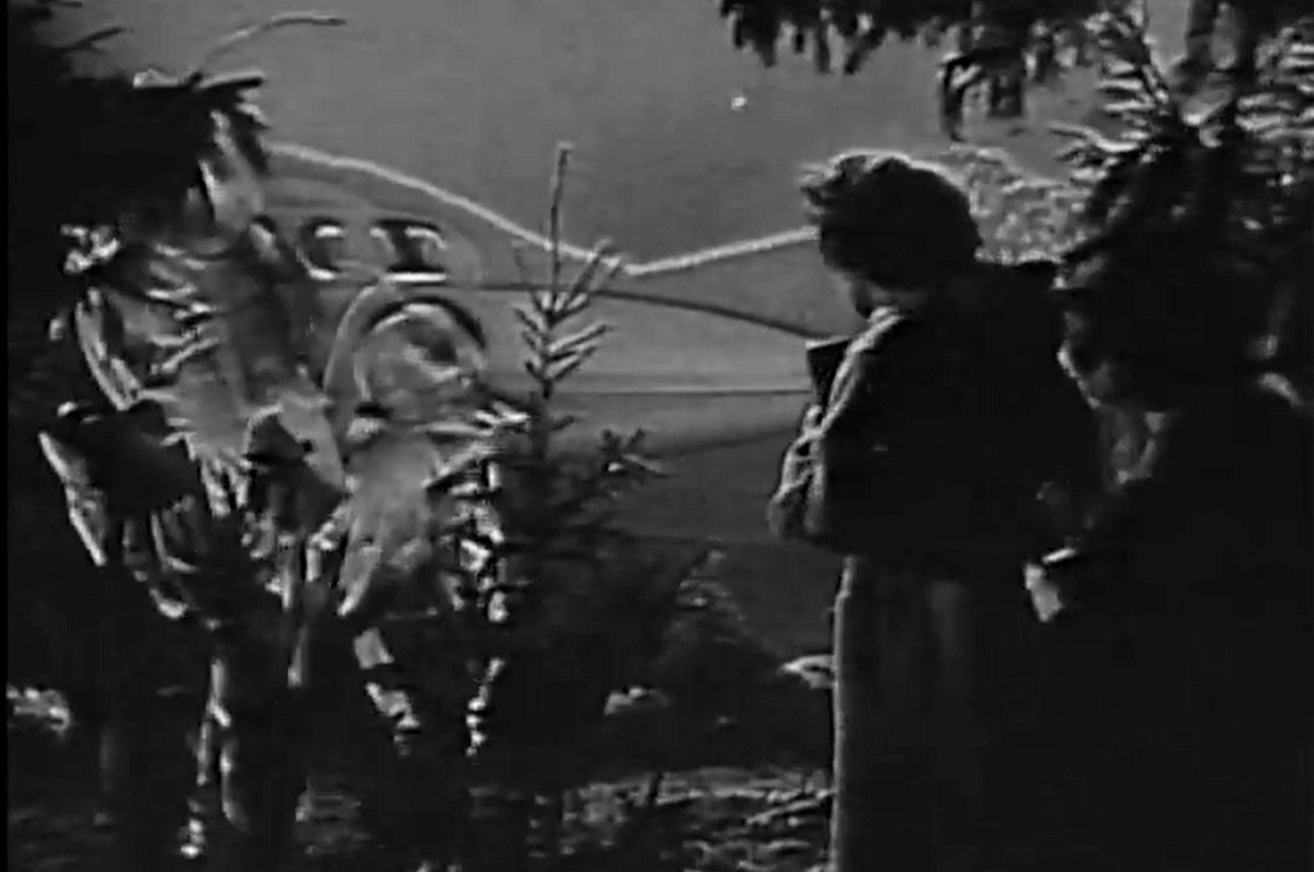 As science fiction Kvinnens plass is a fringe case. The flying saucers have no bearing on the plot, and after their initial introduction we never learn anything more about them. The film was made in 1956, when the 50’s UFO craze was at its peak, and they might as well be replaced by the Yeti or the Loch Ness monster without changing the plot or sentiment of the film. Rather, the UFO’s have a more symbolic meaning. Partly, as Michael Wynn writes on the blog Norsk film, they can be seen as a metaphor for the odd division of responsibilities in the Haugen family: a man staying at home with the baby while his wife goes to work is just as unlikely as Mrs. Haugen getting a photograph of a flying saucer. But the two “Martians” that Mrs. Haugen meets in her dream also represent the gulf between her and her husband and son that is growing ever wider because of her professional ambitions.
