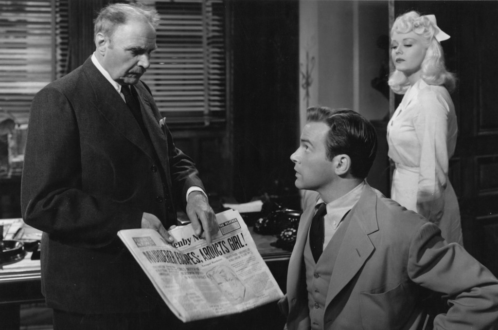 Would this film have had a larger budget, it would be easy to see Cary Grant and Katherine Hepburn in the lead roles. I haven’t seen Richard Carlson in a comedy before, but he’s made clear in the movie’s I’ve seen with him that he has a strong comedic strand and can wield a nice, understated irony. He does well here, aged 30, and still climbing his way up the career ladder as leading man, feeling somewhat more sprightly than in his later films, although there’s always been a lightness over his acting, making him instantly relatable as a human being, as opposed to many of the chisel-jawed leading men of the era. In most of his SF movies, he benefits from good co-stars, but seldom as good as in Fly by Night. Nancy Kelly’s Pat Lindsey is no fainting waif; in a scene near the end, where Burton wants her to fake a fainting, she protests: “I have never fainted in my life!”. And rather than quiver in a corner when a fistfight gets going, she clocks bad guys double her size. Kelly has great rapport with Carlson, which helps elevate the film above its programmer status.