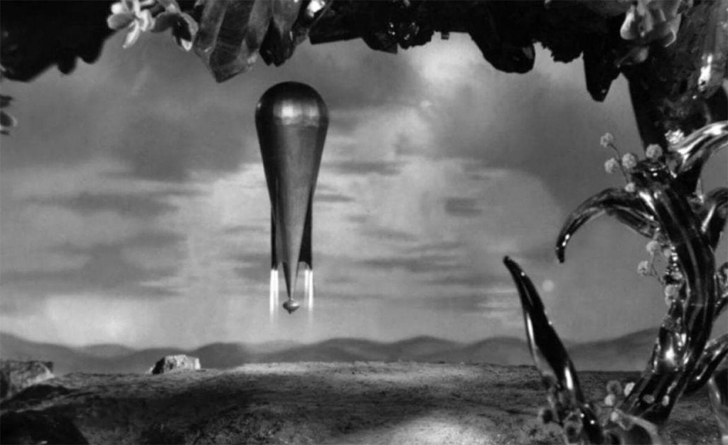 In this context, Croisères sidérales is a movie of some pedigree, as it is the first movie to revolve around time dilation as a means of time travel — even if it wasn’t the first to incorporate it in a plot. In its opening credits, the film states that its premise is based on scientific fact, even if the screenwriters have used some “artistic licence” when it comes to the numbers. And certainly, while the theory is basically sound, compressing 25 Earth years into 25 days would require a speed and distance far beyond Venus or our solar system — and I’m not sure a balloon propellant would quite be up to the task.