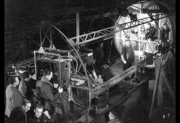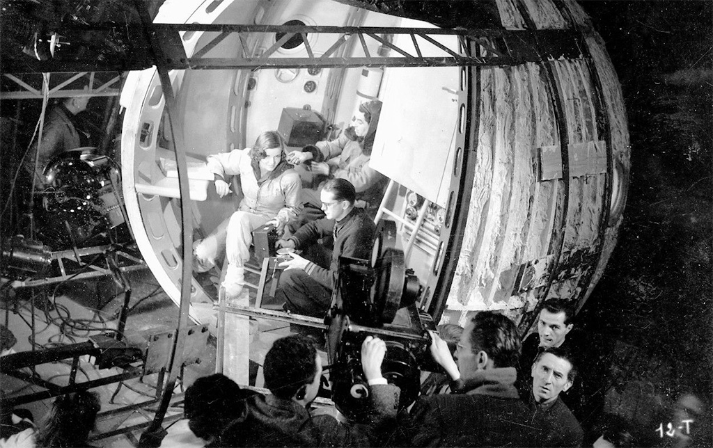 I have discovered 4 modern reviews of any real worth, ranging from gushing to moderately bemused. First there is Gulzar Joby at the afore-mentioned blog 36, quai du Futur, who represents the gushing reviewer. He opines that the film “oscillates between exhilarating comedy, social criticism, coarse scriptwriting tricks and technological realism”. The somewhat clumsy shot of Sologne and Carette walking along the “treadmill” in the rotating set is described thus: “The illusion of the absence of gravity is spectacular”. According to Joby, the movie is “pleasant and full of quality, aesthetic and narrative treasures”. Captain Jim at Cinematraque also gives the film a strong recommendation, but rather than taking it as a crafty fable of the socio-political mindscape of the French Vichy years, Jim sees it as an absolutely baffling trainwreck of a cult movie: “If the special effects are at times very inventive, the treatment of the laws of physics in the film is quite scandalous, and often funny. […] This movie is a must see. This is not a simple recommendation that I make to you, it is a friendly advice. You have to see Croisières Sidérales to believe it.”