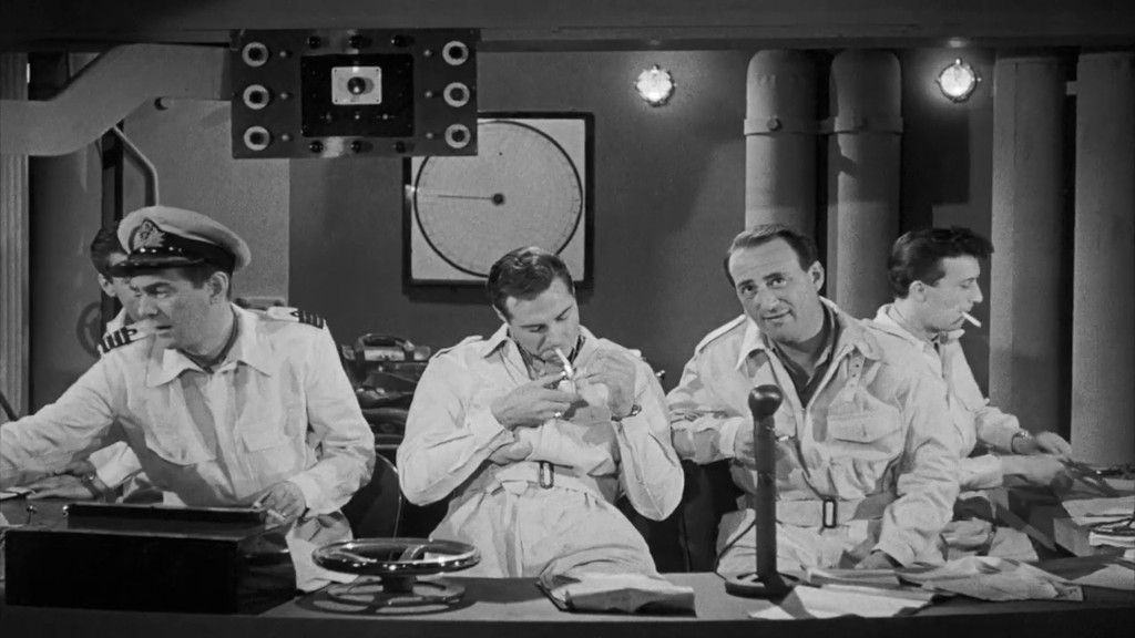 And that’s about it for the pros. The cons, on the other hand, are innuberable. As opposed to the 60-minute running time of the American B-movie, the standard running time for a British film was 80 minutes. Fire Maidens from Outer Space would have struggled to satisfyingly fill 60 minutes, and at 80 it is a slog. The opening scene where Blair and Higgins discuss the mission seems to go on forever, partly because it is filmed in a single take, and partly because the actors take their sweet time delivering their lines, both making time to suck their pipes and cigars and seemingly having a contest of which of them can look the smuggest after having stated a point. This goes on for the entire movie. Whenever someone says a line, regardless of its content, director Roth makes sure all five men have ample time to look at each other and look extremely smug. For lead actor Anthony Dexter this smugness seems to come naturally, but it can’t be a coincidence that all five lead actors look like they’ve just done a kiss-and-tell with Marilyn Monroe after delivering lines like “The atmosphere seems to be breathable” or “Don’t forget your binoculars”. It doesn’t help, of course, that half of the lines spoken in the film have something to do with the characters’ expectations of getting laid with a beautiful young woman. But was this part of the direction that Roth have the actors, or was there just some epidemic of smugness passing over the set when they filmed the movie?
