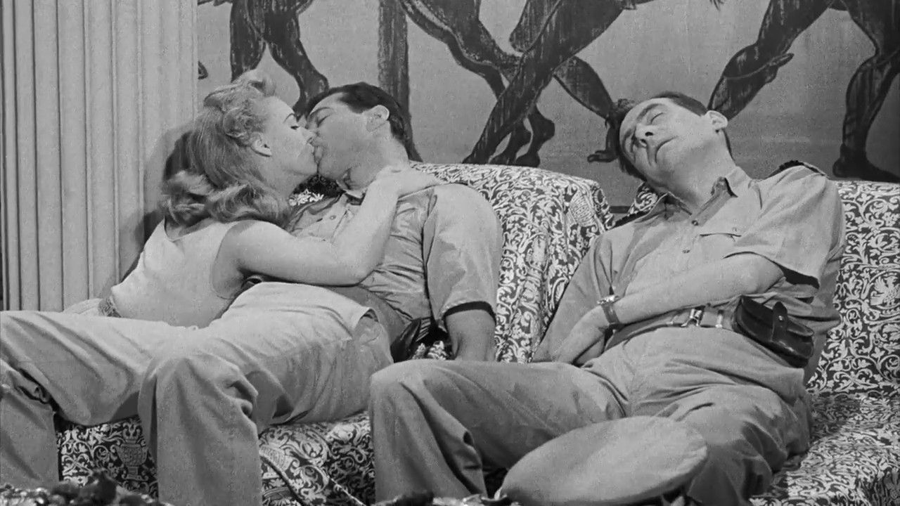 Susan Shaw getting it on with Anthony Dexter while Paul Carpenter dozes off.