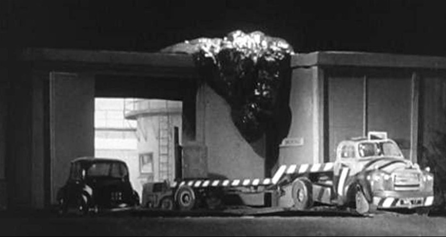 Royston opines that we are dealing with some primordial life form from the depths of the Earth, which feeds on radioactivity, and has now broken through to the surface. The thing, whatever form it takes, seems to be working itseld towards the nuclear test sight where Royston works, ploughing straight through the small town in its vicinity. Soon we see it: a black, writhing, mass of ooze, which tears down fences and climbs walls. Nothing can stop it, as it is impervious to guns, explosives and anything else the army can throw at it. Luckily Dr. Royston has just finished work mon a miniature model of a machine that can de-radiate (hopefully) any radioactive material. But with only hours to spare, will they have time to move all the radioactive material away from the site? And will the scientists and military be able to replicate a working large-scale de-radiation machine before it is too late?