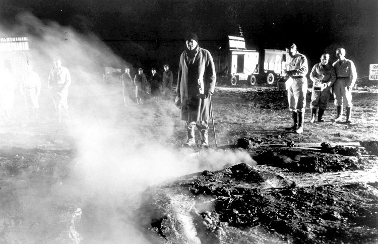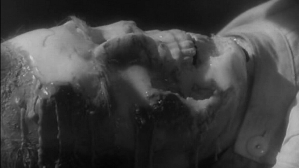 Dean Jagger gives a standout performance as Dr. Royston, inhabiting the eccentric, headstrong, but ultimately kind-hearted scientist who always seems to thing one step ahead of everyone else. The rest of the cast is not bad either, with Leo McKern doing a great job as Inspector McGill, and William Lucas giving a dramatic portrayal of the heroic private who is lowered into the fissure to investigate (a scene, by the way, which is brilliantly replicated in Alien). Marianne Brauns also shines (see top image) in a small but dramatic role as a lab assistant whose boyfriend is melted by the radioactive goo. The rest of the cast, I suspect, suffers from director Leslie Norman’s less than fiery enthusiasm for the movie, acting in a typical British “jolly good, carry on” manner, which doesn’t necessarily hurt the film, but doesn’t do it any favours, either.