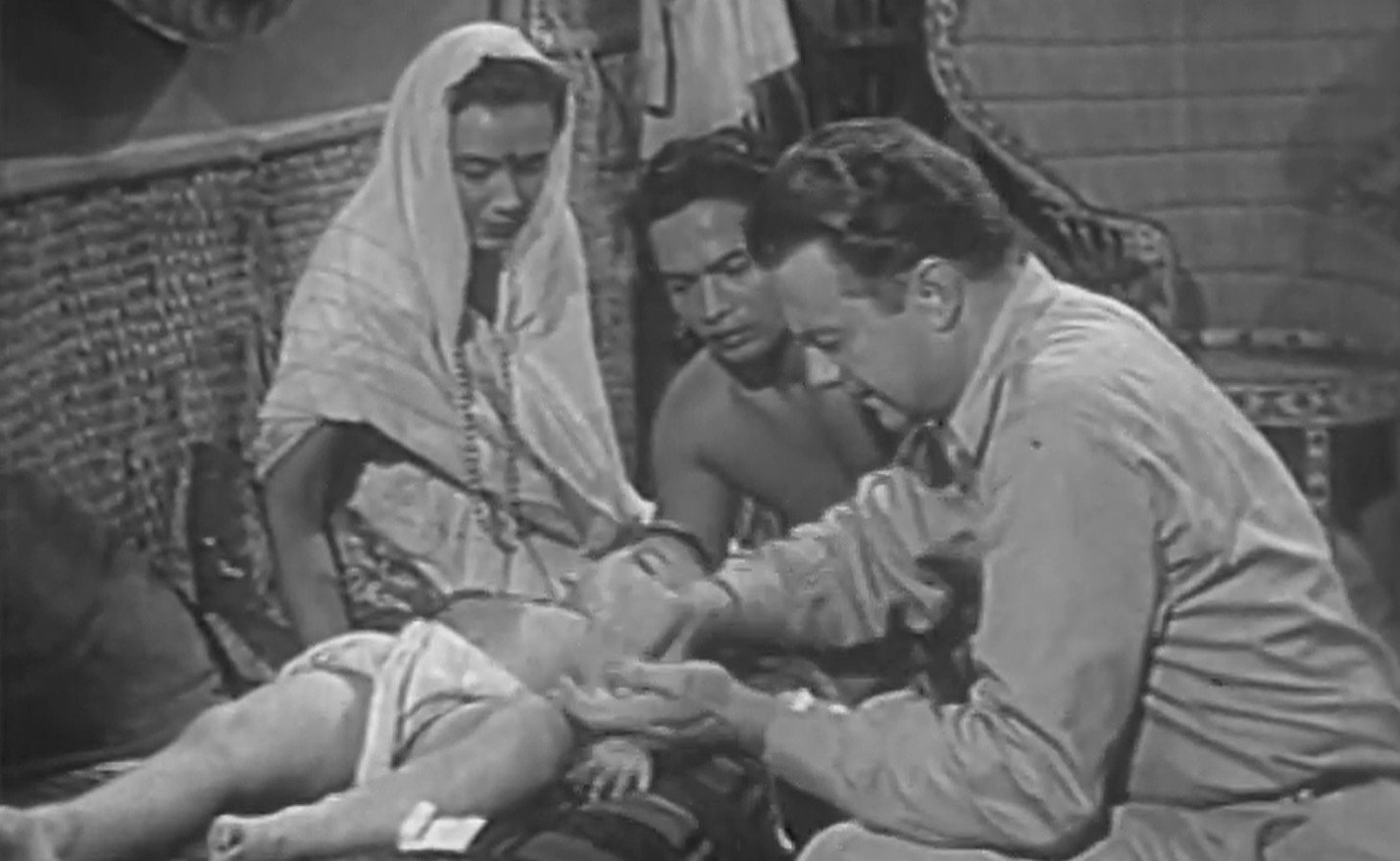 Serena Sande, playing Sabu’s sister, whose son is burned by the radioactive rock, also appeared in the original pilot for Star Trek in 1966, playing “Second Talosian”. Her son is played by Sabu’s little brother, Dastagir.