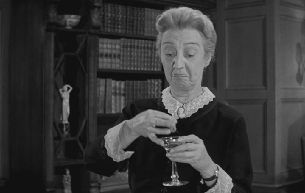 There’s a fun breakout character in the film, the housekeeper Hannah, who isn’t above gulping down leftover drinks and shakes mutters beneath her breath at the silliness going on in the two scientists’ house. She is played by character actress Marie Blake, immortalised as Grandmama Addams on The Addams Family (1964–1966). There’s also a bit-part by Paul Cavanagh, who appeared in The Man in Half Moon Street (1945, review) and did a standout performance in The Man Who Turned to Stone (1957, review). There’s a small role by an actor whose most intriguing feature is his name, X Brands. Born Jay X Brands, he was of German ancestry. The story goes, that in his ancestor’s small German hometown, there were two men called Jan Brands, and one of them added an X to his name to differentiate the two, and became known as X Brands. The unusual name became a family tradition. Brands was a prolific TV guest star, best know for his co-starring role as native American Pahoo-Ka-Ta-Wah in Yancy Derringer (1958-59). In 1958, Tod Griffin palyed the lead in another SF movie called She Demons (review).