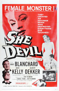 She Devil. 1957, USA. Directed by Kurt Neumann. Written by Carroll Young & Kurt Neumann. Based on short story by Stanley G. Weinbaum. Starring: Mari Blanchard, Jack Kelly, Albert Dekker. Produced by Kurt Neumann. IMDb: 5.7/10. Rotten Tomatoes: N/A. Metacritic: N/A.