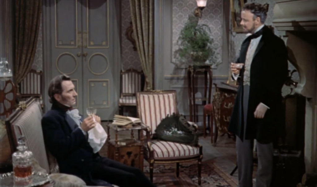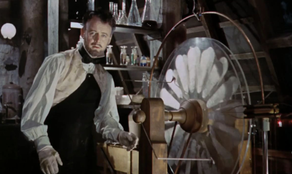 The Curse of Frankenstein was not the first horror film to be made in colour, precedents can be found as far back as the early 30’s, with films like Warner’s Doctor X (1932, review) and Mystery of the Wax Museum (1933). But in general, few colour horrors had been made. Partly this had to do with the fact that since the introduction of the Technicolor three-strip process, older and cheaper two-strip processes that had been used for the afore-mentioned films was successively phased out: the murky and restricted colour palette of the two-strip colour (it had no blue, for example) was seen as inferior. Technicolor’s three-strip process was cumbersome and expensive, and the Technicolor company was highly protective, and demanded each film made with the process had to have a Technicolor supervisor on set. This meant that the process was primarily used by major studios’ bigger-budget films. Furthermore, colour was primarily seen as contributing mostly to fantasy and more gleeful films, such as costume dramas, musicals and westerns. The general consensus was that colour provided little extra value to crime and horror films, often dark and stark stories inspired by the shadowy cinamatography of German expressionism and noir.