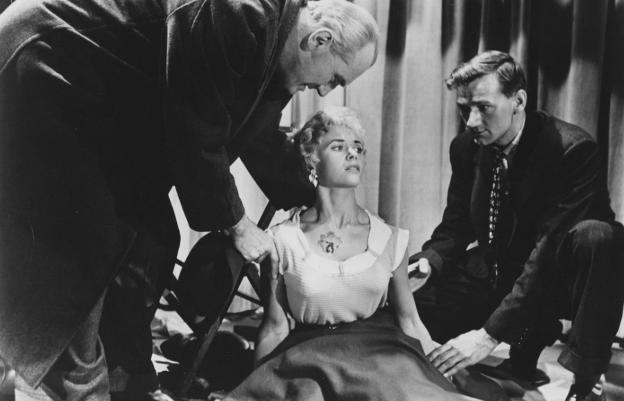 Brian Donlevy was a celebrated character and lead actor in the forties, after he had been nominated for an Oscar for his role in Beau Geste (1939). He played the title role in The Great McGinty (1940). He had leads or second leads in John Farrow’s Wake Island (1942), the noir classic The Glass Key (1942), Fritz Lang’s Hangmen Also Die! (1943) and John Hathaway’s Kiss of Death (1947), among others. From 1949 to 1953 he starred in the radio serial Dangerous Assignment, which was turned into a TV series in 1952, but it aired only for one season. This was sort of the last hurrah for the ageing actor, and in the early fifties film roles were sparse, and he got attached to Robert Lippert’s small production company (a front for 20th Century Fox), which amassed a roster of star actors down on their luck. Drinking was one of the reasons for Donlevy’s fall from grace in Hollywood.