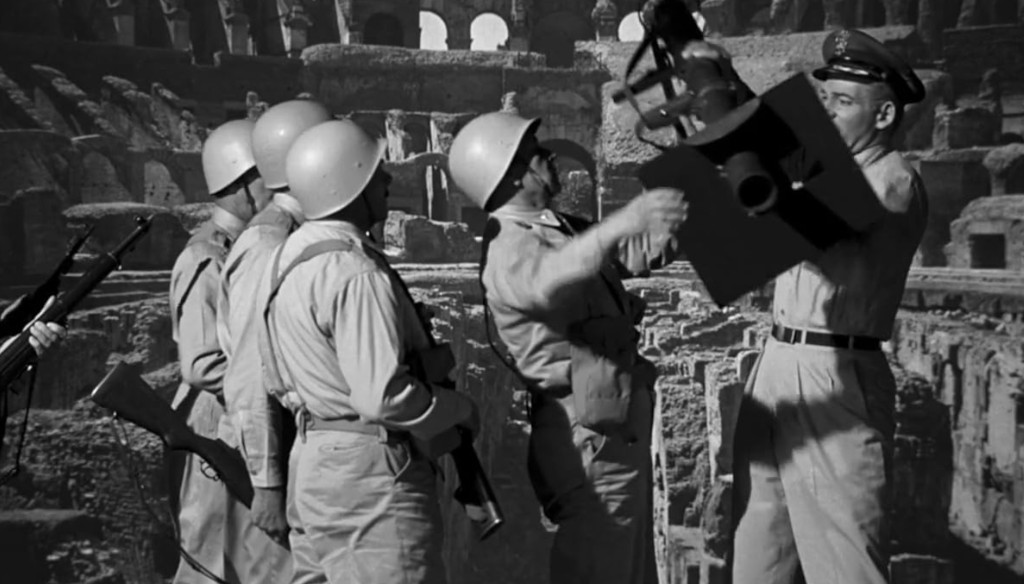 The movie starts out quite sprightly, with the scene of the rocket crashing close to a group of fishermen, of which two men and a boy row up to it to investigate, and end up rescuing two people from the sinking spaceship. This is a pretty exciting scene, and promises a little bit of originality. The Italian setting also sets it apart from many of its counterparts, adding a little bit of flavour. I like the way the actions of the Italian authorities is portrayed, as well as the cooperation between the Italian police and the US military. However, I do not buy the fact that the boy, Pepe, after having encountered a space ship and saved two dying men from it, just picks up a dangerous-looking cyliner, empties it of its content and sells it for pocket money in order to buy a cowboy hat, when he obviously knows it came from the ship. Neither do I buy that the renowned zoologist simply accepts that the boy has found a new species of monster just lying on the beach, and happily trots off to Rome with it, without contacting the local authorities — just as his daughter is treating patients from a rocket ship from Venus in the immediate vicinity. These events immediately put a strain on credibility, and reveals the film as the programmatic monster thriller that it is. Plus the terribly written, flat and cringy romantic subplot that producers insisted on cramming into these films, despite the fact that nobody watching them was remotely interested in a romantic subplot. The deus ex machina turn of events that set Ymir free after being captured is also just lazy writing.