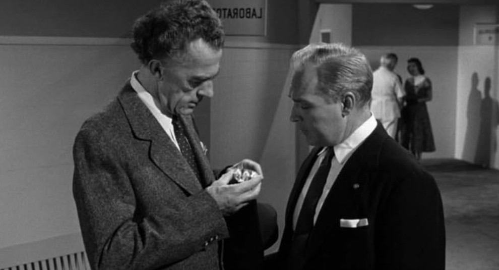 According to Fresco, a seasoned and sought-after writer, he stuck closely to Mantley’s book, “amplifying” certain aspects. However, Fresco admits, despite an interesting premise, the whole story “was full of holes and there wasn’t a lot you could do”. Eventually, the author John Mantley himself was called in to rewrite the script, and according to Fresco, ripped up most of the changes that Fresco had done. I haven’t read the book, but according to several sources, it is, unsurprisingly, a very faithful adaptation, even if Bud Webster at the magazine Fantasy & Science Fiction writes that the film is “even more blatantly anti-Communist than the book, which is saying something”. Despite doing the groundwork on the script, Fresco didn’t receive a script credit. He tells Tom Weaver that he simply didn’t think it was worth fight for a screen credit on this movie.