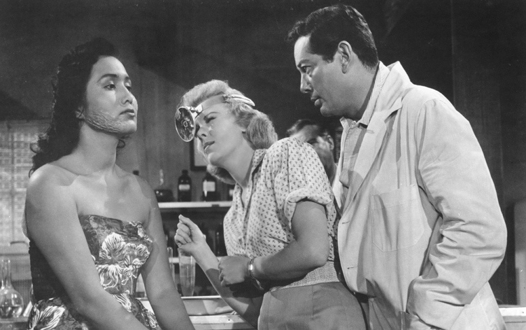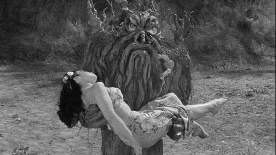 The only other positive thing you can really say about the script is that it is at least somewhat coherent. The plot, such as it is, is a mishmash of popular tropes. South Sea adventure movies had been popular for a long time, but increased in popularity in the mid-forties after US soldiers returned home from having served on the islands during WWII. However, apart from the sarongs and a short hula dance sequence, there is nothing in the portrayal of the natives suggesting a South Sea culture. Rather, they are portrayed very much in the casually racist manner that Hollywood movies portrayed African tribes in the period, complete with voodoo rituals that, of course, have never been native to the Pacific islands. There’s the old colonialist white saviour narrative with western scientists saving superstitious and ignorant natives from themselves, battling evil witch doctors and romancing meek and submissive native girls. The tree monster born out of native magic places this in the fantasy monster movie category, but Bernstein has also wedged in the catch-all trope of the times, radiation, placing this film somewhat loosely on the fringes of science fiction.