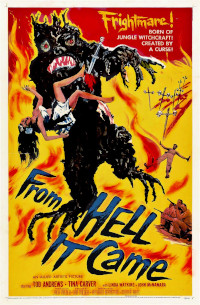 From Hell It Came. 1957, USA. Directed by Dan Milner. Written by Richard Bernstein & Dan Milner. Starring: Tod Andrews, Tina Carver, Linda Watkins, John McNamara, Gregg Palmer, Robert Swan, Tani Marsh, Suzanne Ridgeway, Lee Rhodes, Grace Mathwews, Baynes Barron, Chester Hayes, Lenmana Guerin, Al Kikume. Music: Darrell Calker. Cinematography: Brydon Baker. Editing: Jack Milner. Art direction: Rudy Feld. Makup: Harry Thomas. Sound: Frank Webster. Special effects: James Donnelly. Produced by Dan & Jack Milner for Milner Brothers Production.