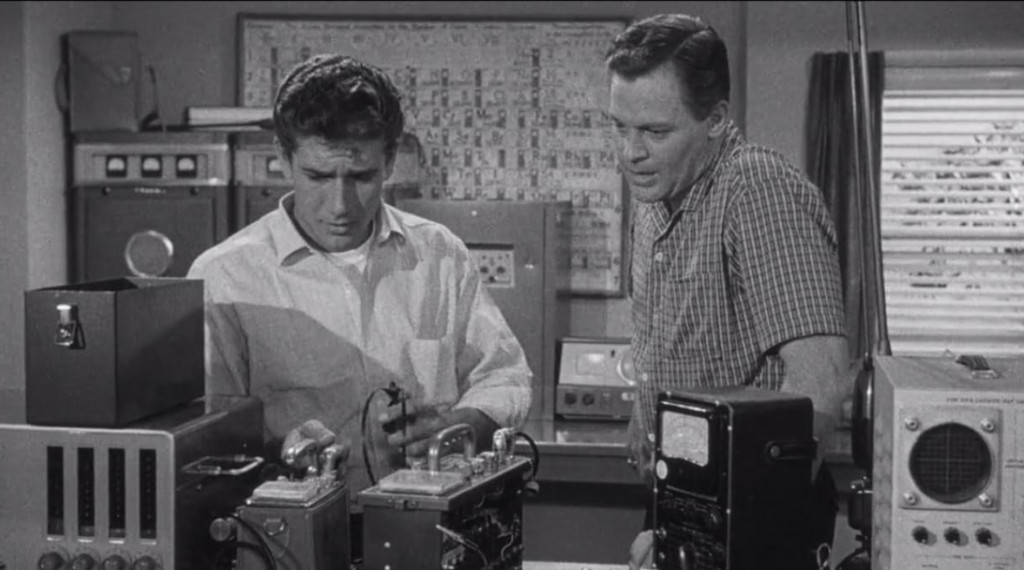 Nathan Juran makes the most out of the script and the limited sets by keeping things moving and flowing. Even the cheapskate effect of simulating an explosion impact by shaking the camera and having the actors stumble around almost works, except you can see one of the actors wiggling a flag pole behind his back. Juran was never an especially stylish or innovative director, but he was a solid storyteller and knew his stuff. It is Juran’s strong direction that lifts this movie above the average late 50’s SF exploitation programmer. Even if he chose to be credited under a pseudonym.