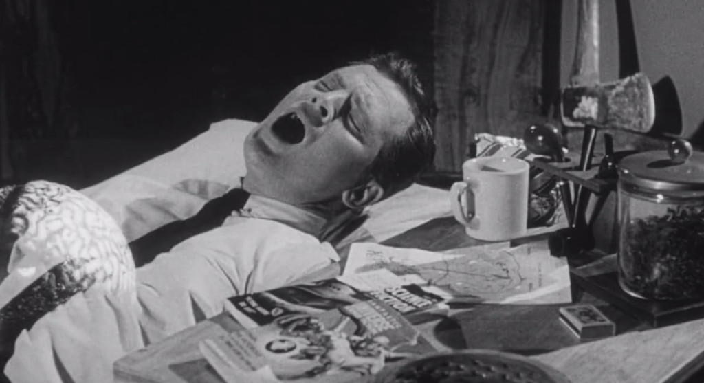 As opposed to most scenarists making science fiction movies in the 50s, Jacques Marquette was actually a science fiction fan. He tells Tom Weaver he read all the pulp magazines, and was thus up to date with what was going on in literary SF, rather than just the monster and UFO movies being made as cash grab in Hollywood at the time. The idea for The Brain from Arous is an original one for a movie, and taps into the body snatching idea that was prevalent in a lot of literary SF at the time, not only Needle, but also Jack Finney’s Invasion of the Body Snatchers, and even more closely related to the screen story, Robert Heinlein’s The Puppet Masters. The film’s literary roots are also seen in the fact that rather than just state that the aliens are interested in female humans, we actually see a horny alien trying to mate with the leading lady, something which was probably often considered a bit too strong in a genre that was generally aimed at adolescents and teenagers. This may also be the first movie in which good aliens are hunting down bad aliens on Earth, creating an interesting twist on the alien invasion trope.