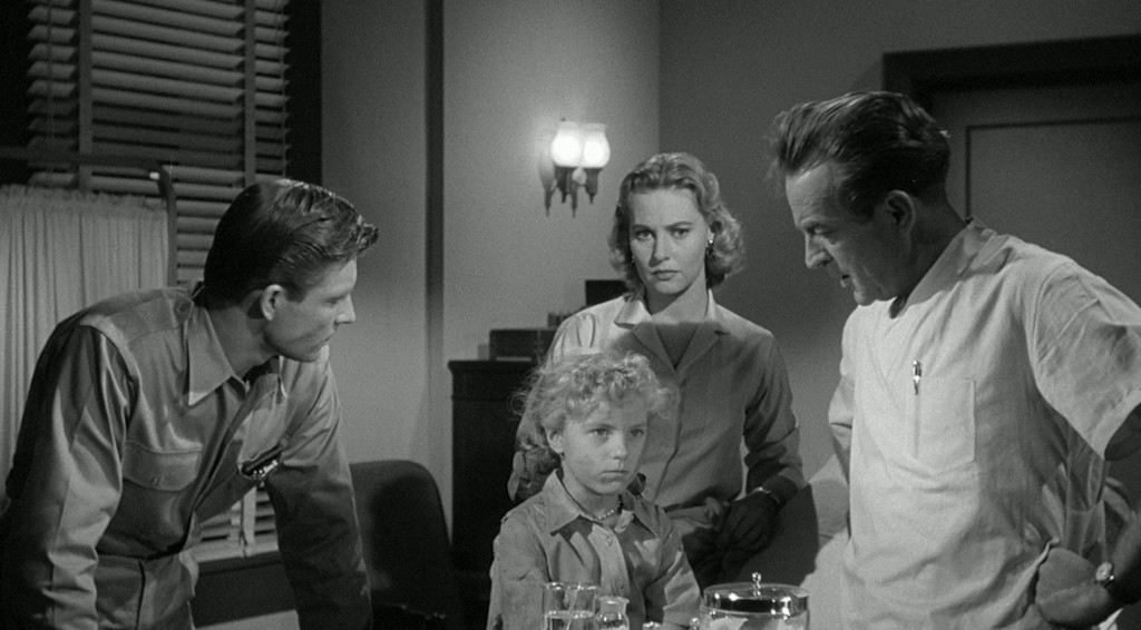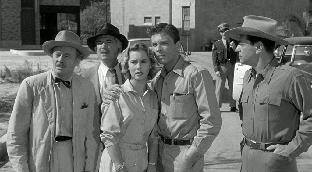 John Sherwood’s direction is competent but uninteresting. He creates a few atmospheric moments and is able to drum up sufficient tension, but lacks the sensitive, poetic touch of someone like Jack Arnold, even if the script occasionally veers off towards Arnoldish poeticism. The acting is competent across the board but only two actors stand out, Les Tremayne in his role as the newspaper editor, and SF veteran William Schallert in a short but funny cameo as a weatherman. Grant Williams was spectacularly good in Universal’s The Incredible Shrinking Man (1957, review), but has a nothing role to work with here. Lola Albright is fine, but she was better as a femme fatale than as an ingenue.