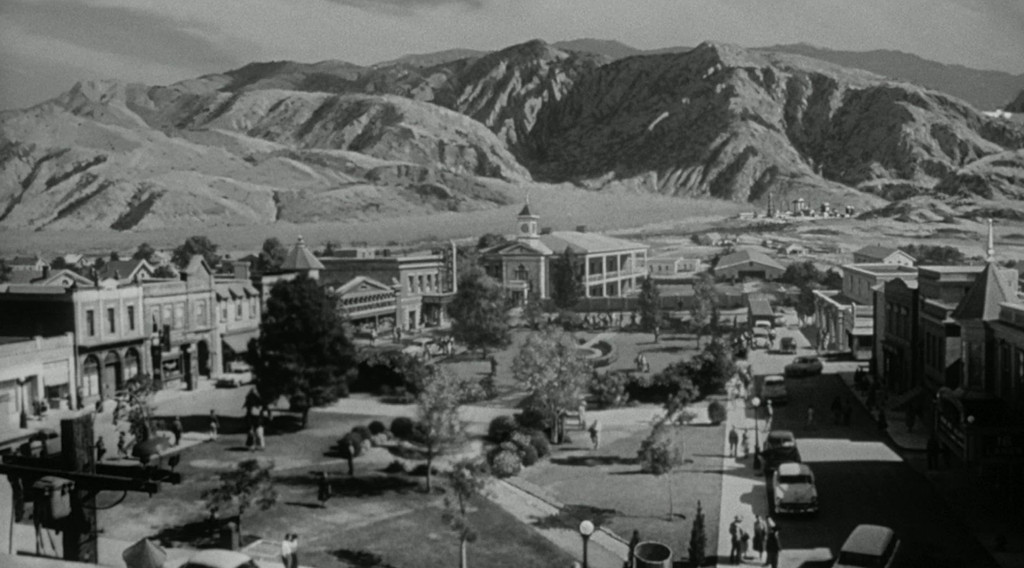 It Came from Outer Space introduced the trope of inserting a monster/SF menace into a small desert town, creating a clash between sleepy, idyllic Americana and an element bringing change; a threat and uncertainty upsetting the comfortable life of the citizens. The trope was the handiwork of Ray Bradbury, who wrote the story for the 1953 movie, and it has seldom been as well executed as in that film. Them! (1954, review) replicated the formula with great success, and this made it stick. The Monolith Monsters also strives to set up the idea of a small town under siege from – something. However, the script never manages to give the threat a transferred, symbolic meaning. In the winged words of Robert Fresco, it’s just “rocks that grow”, in the same way as that the menace of The Deadly Mantis (1957, review) was just a giant preying mantis. When monsters of the early 50s were metaphorical in nature, warning either of a nuclear war or a communist invasion, the threats of late 50s SF films were largely devoid of any social, political or philosophical message. They were just monsters and growing rocks, conjured up for entertainment.