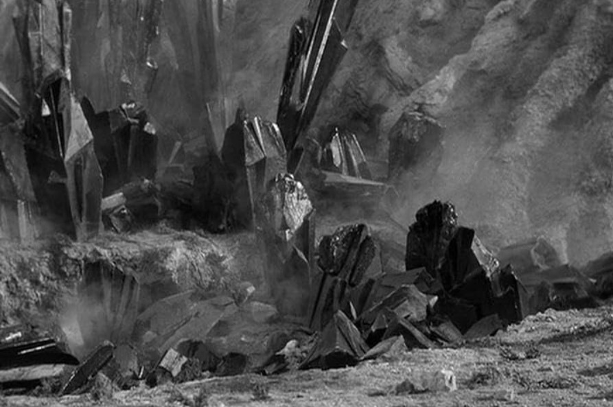 The Monolith Monsters. 1957, USA. Directed by John Sherwood. Written by Robert Fresco, Norman Jolley. Starring: Grant Williams, Lola Albright, Les Tremayne, Trevor Bardette, Phil Harvey, William Flaherty, Harry Jackson, Richard Cutting, Linda Scheley, Dean Cromer, Steve Darrell, Claudia Bryar, Troy Donahue, Jerry Dunphy, Paul Frees, Eddie Parker, Paul Petersen, William Schallert. Cinematography: Ellis Carter. Editing: Patrick McCormack. Art direction: Alexander Golitzen, Robert Emmett Smith. Costume design: Marilyn Sotto. Makup artist: Bud Westmore. Sound: Leslie Carey. Special effects: Clifford Stine, Frank Brendel. Produced by Howard Christie for Universal.