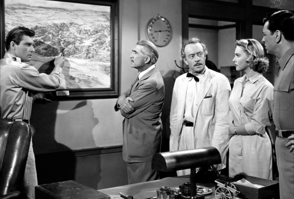 Fresco says that he struggled with the script, and finally left it for Norman Jolley to polish off. Jolley had SF experience from writing for the TV shows Space Patrol and Science Fiction Theatre. Fresco tells Tom Weaver that he had hoped that Jolley would have changed the script more – for the better. During pre-production the ending was changed. The original script was set by Salton Sea, and the ending would have had a small army of lorries transporting water from the saline lake, but the budget probably didn’t allow for such an undertaking.