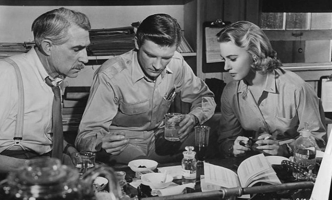 Producer Howard Christie would go on to become the showrunner on the TV show Wagon Train between 1958 and 1965. DP Ellis Carter had also shot The Incredible Shrinking Man, and won an Emmy for The Alphabet Conspiracy in 1959. Universal’s head of the art department Alexander Golitzen is credited for art direction, but most of the work was probably done by Robert Emmett Smith who was nominated for an Oscar for King Rat (1966).