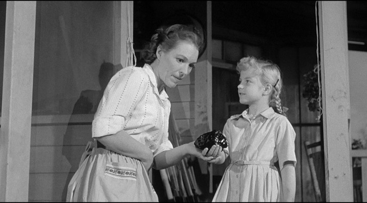 Strange black rock fragments suddenly turn up in the desert mountains outside a sleepy smalltown in the American Southwest. Geologist Ben Gilbert (Phil Harvey) takes a sample for investigation, but can’t identify it. When it accidentally comes into contact with water, it grows exponentially, not only wrecking his house, but also killing Ben by petrifying him. The same fate threatens little Ginny Simpson (Linda Sheley), who picks up a rock on a class trip and throws it in a bucket of water when she gets home.